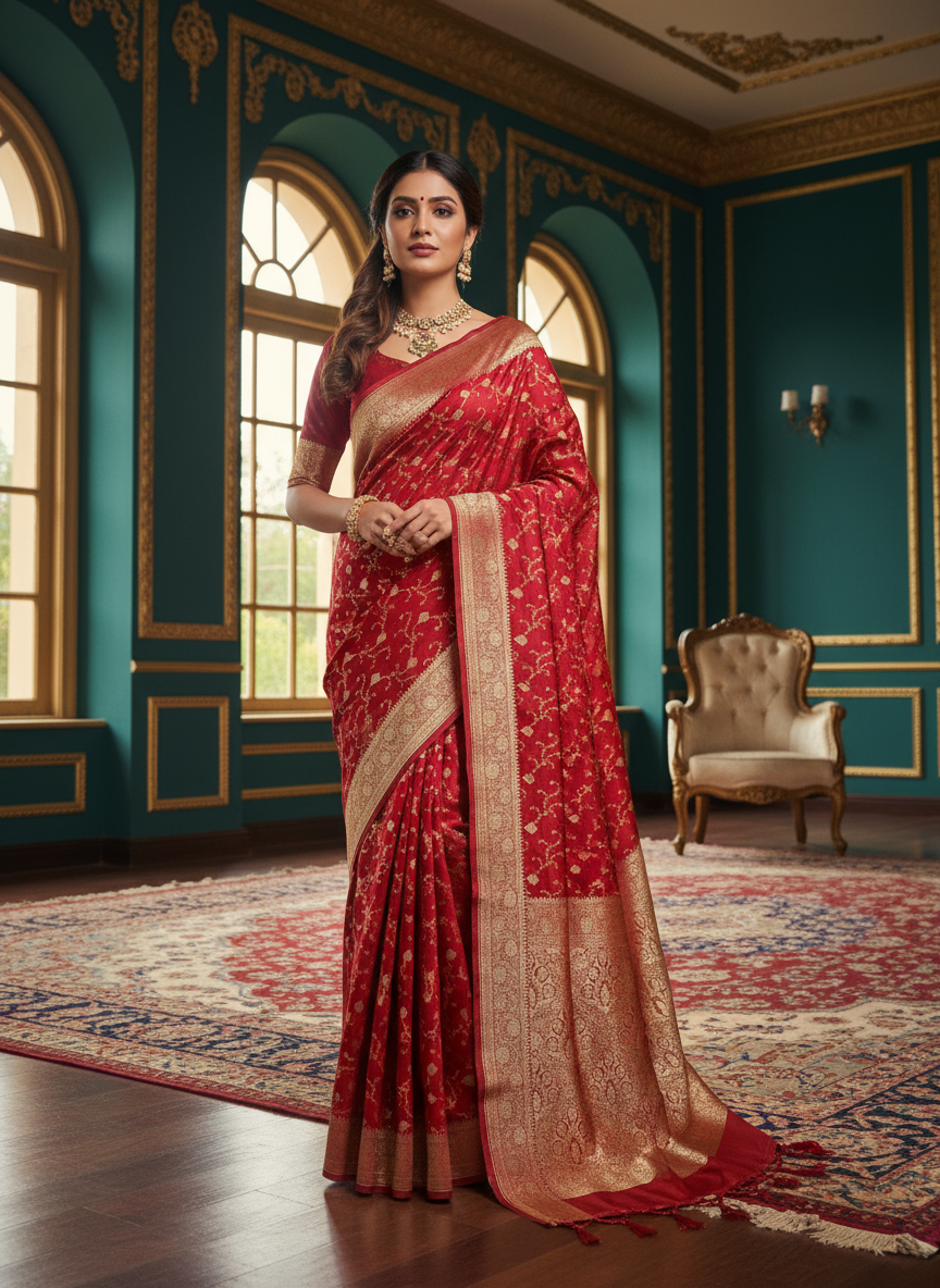 A Banarasi Catlon Saree is where timeless tradition meets everyday comfort. Woven from soft, breathable cotlon , this saree is lightweight and perfect for all-day wear, yet it retains the rich elegance that Banarasi textiles are renowned for. Its hallmark lies in the intricate motifs and delicate patterns inspired by classic Banarasi designs—floral, paisley, or geometric—woven subtly to create a sophisticated, understated charm.