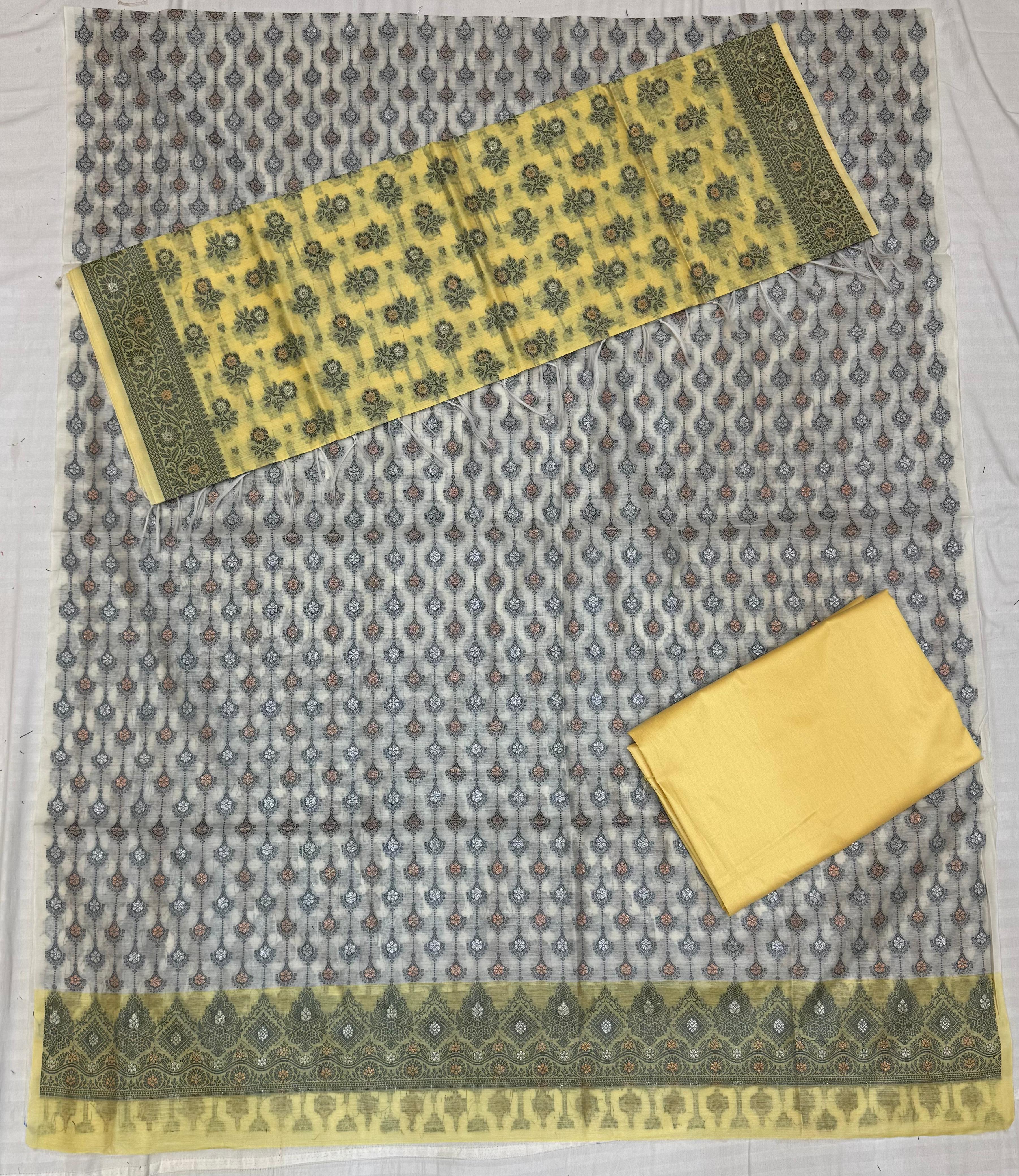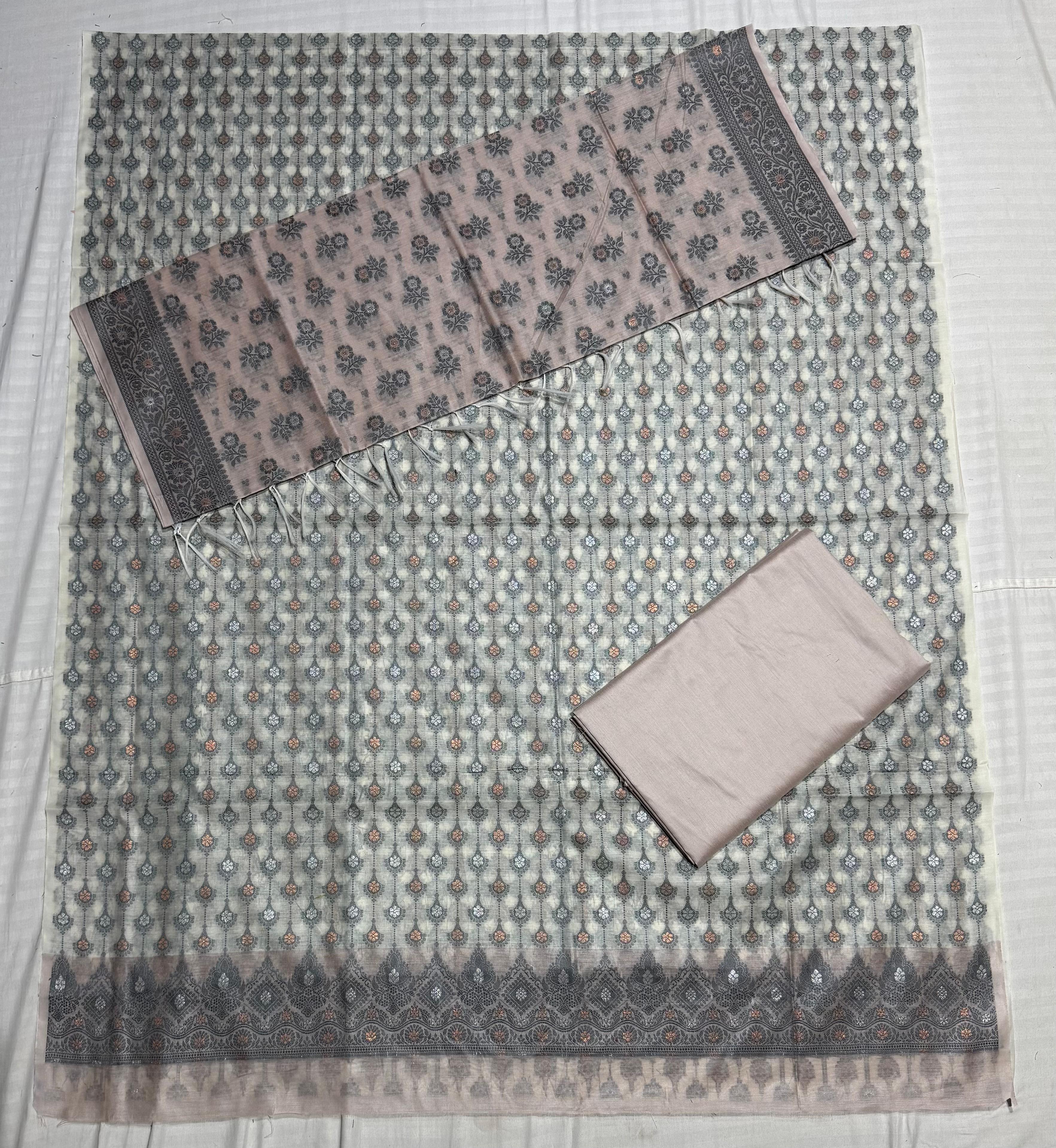 A Banarasi Cotton Suit beautifully blends the timeless elegance of Banarasi weaving with the soft comfort of pure cotton. Crafted by skilled artisans from Banaras (Varanasi), this suit showcases intricate zari or brocade work, often featuring delicate floral motifs, paisleys, or traditional jaal patterns inspired by Mughal artistry.