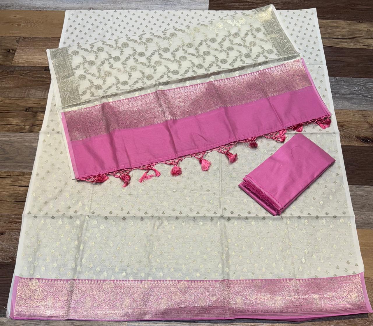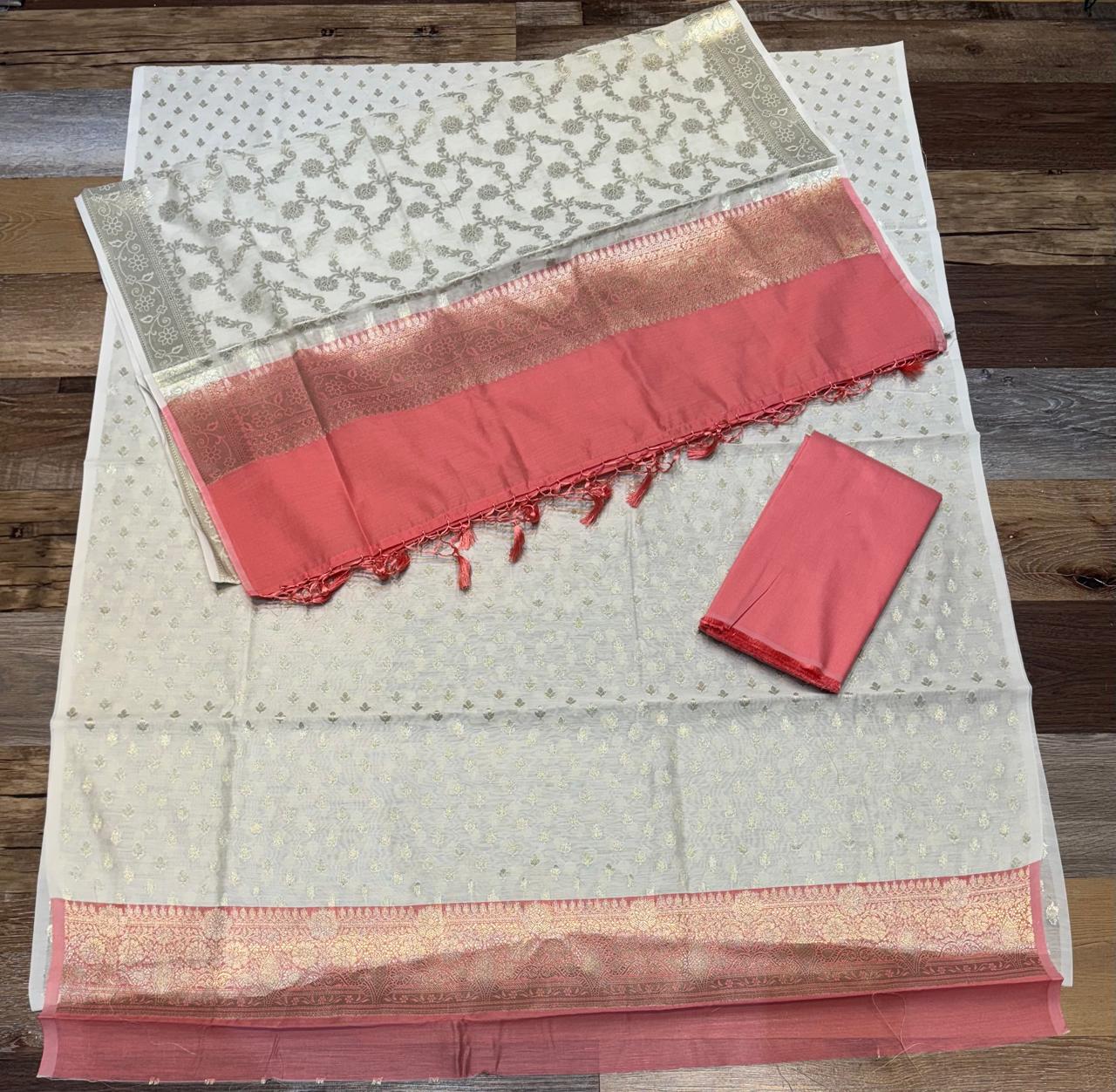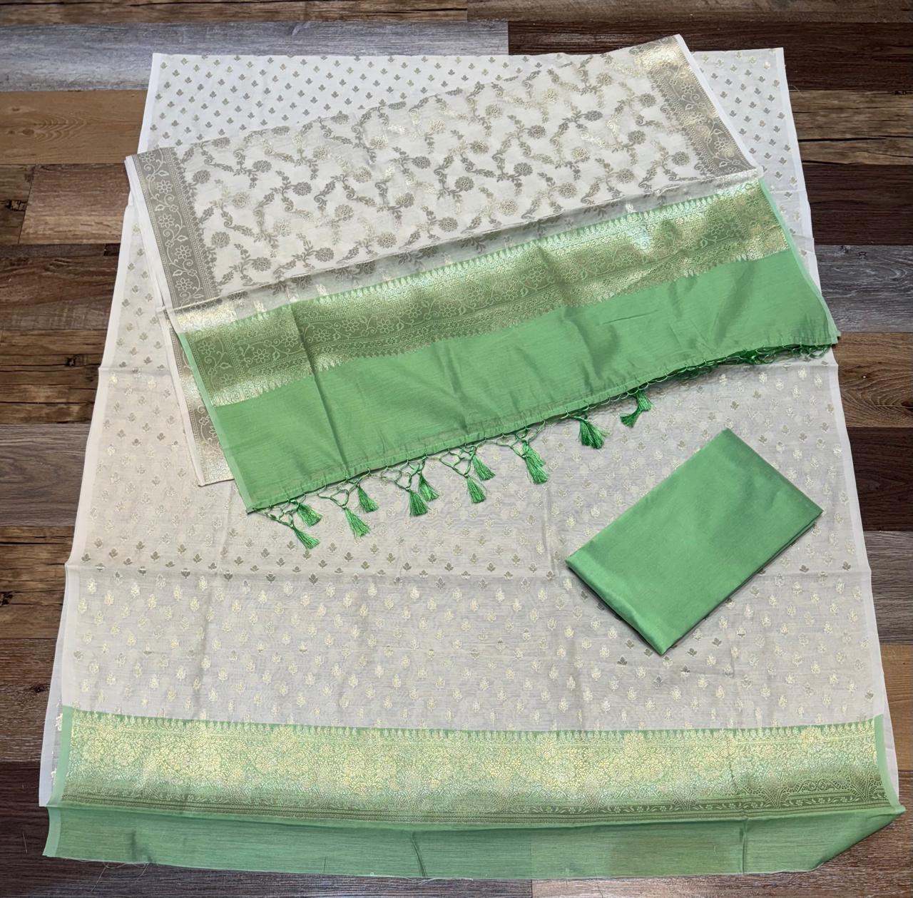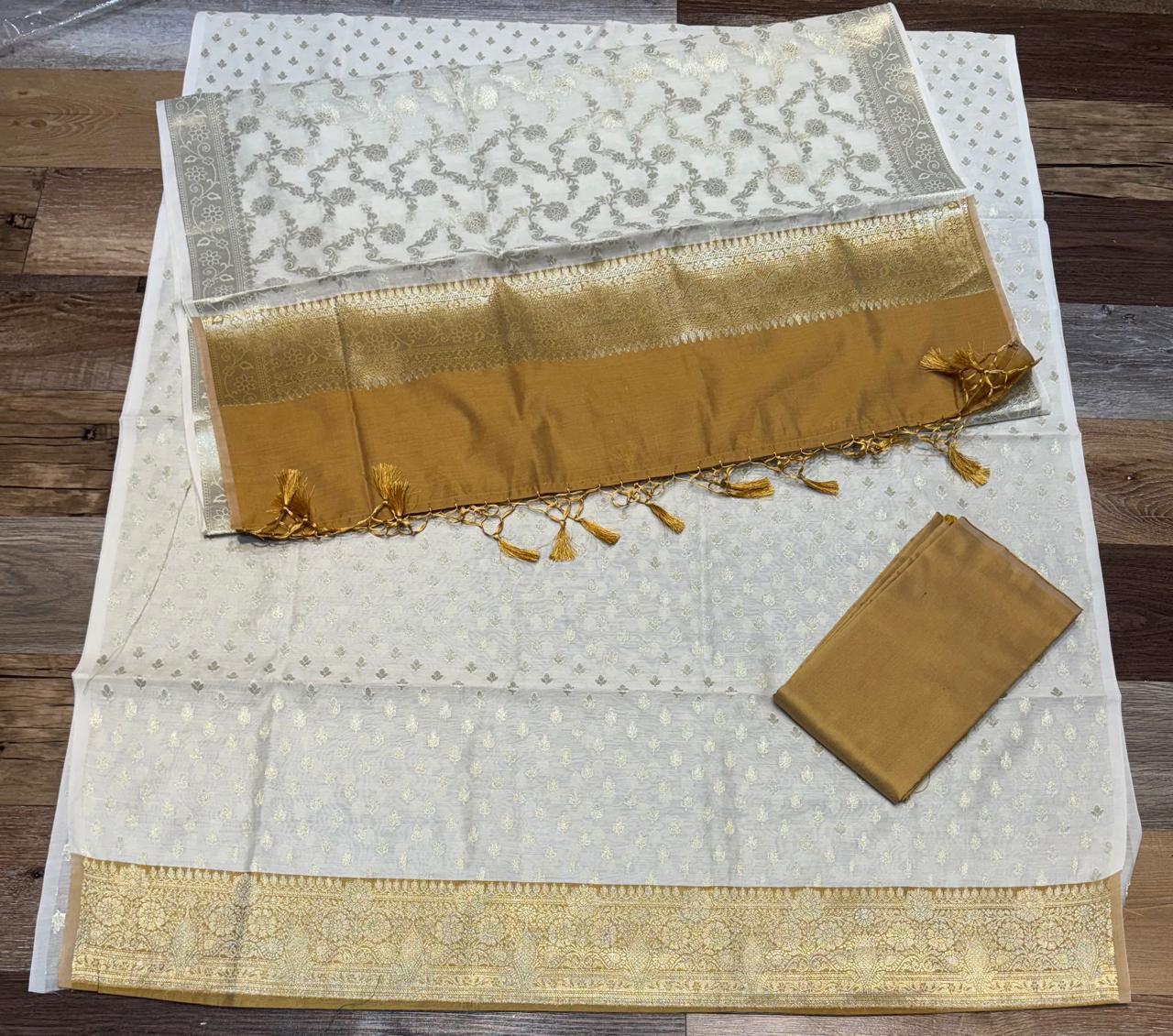 A Banarasi Cotton Suit combines traditional Banarasi craftsmanship with the soft comfort of cotton. Designed with intricate woven patterns and delicate zari work, it brings a touch of elegance to everyday wear. The breathable cotton fabric keeps you comfortable, while the rich Banarasi detailing adds a festive charm. Perfect for casual gatherings, office wear, or traditional occasions, this suit beautifully reflects timeless Indian heritage in a modern, easy-to-wear style.
