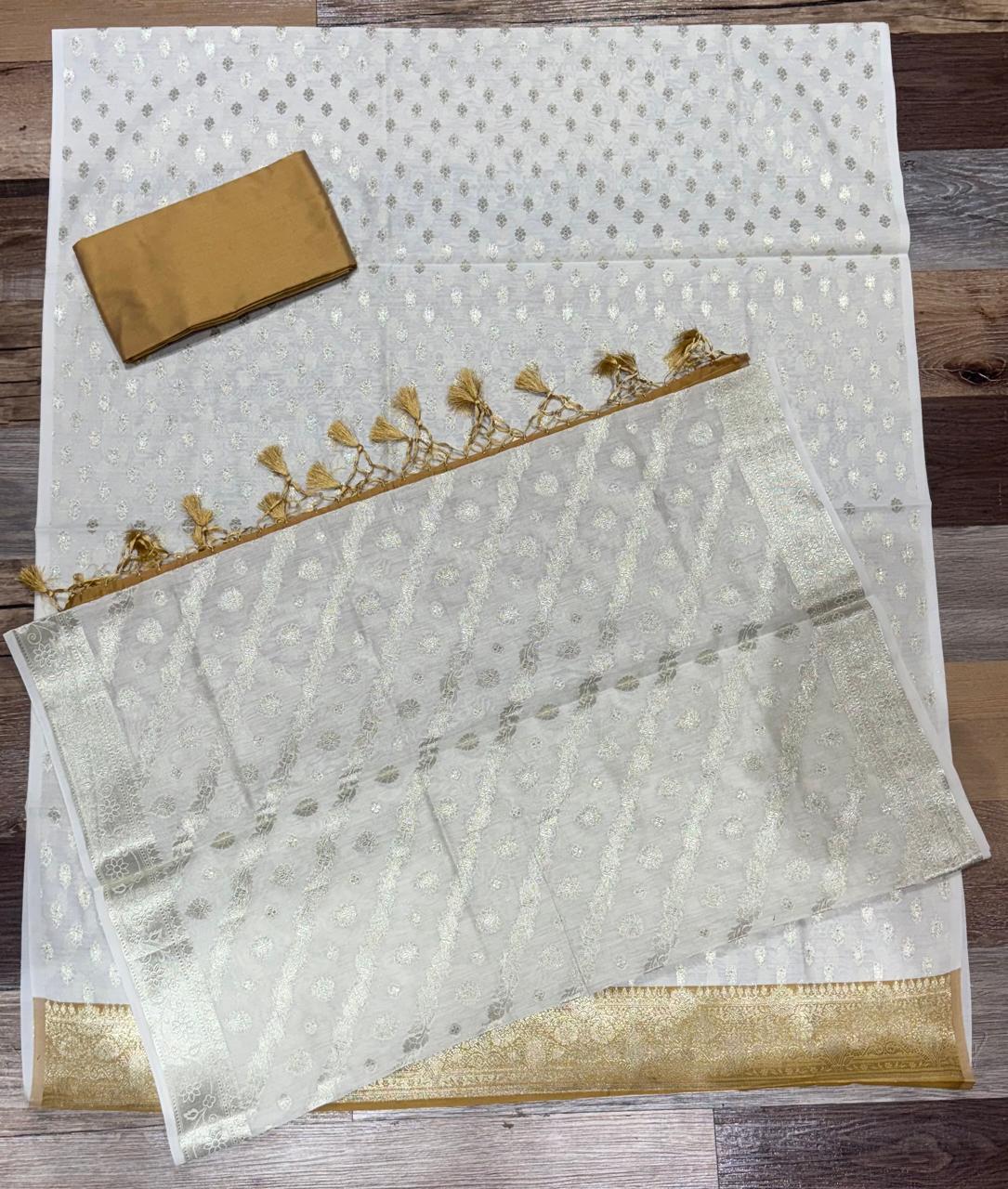 A Banarasi Cotton Suit beautifully blends the timeless elegance of Banarasi weaving with the soft comfort of pure cotton. Crafted by skilled artisans from Banaras (Varanasi), this suit showcases intricate zari or brocade work, often featuring delicate floral motifs, paisleys, or traditional jaal patterns inspired by Mughal artistry.