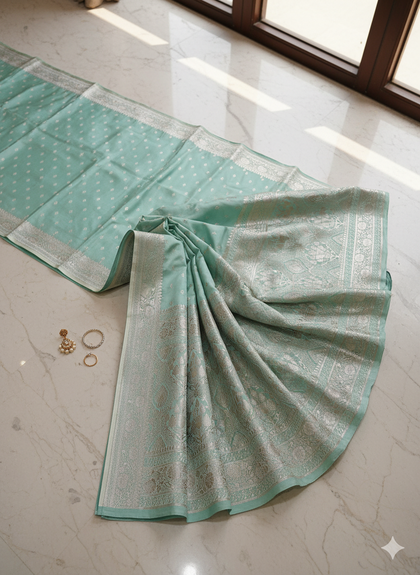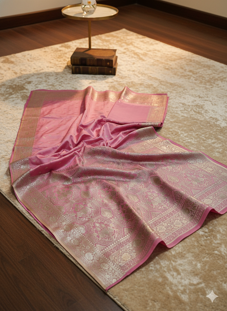 Mashroo Katan Silk is a luxurious handwoven fabric that beautifully blends tradition with opulence. Crafted from pure silk threads, this exquisite textile is known for its smooth texture, natural sheen, and subtle strength. The word “Mashroo” traces its origins to Arabic, meaning “permitted,” and historically, the fabric was created to meet both comfort and cultural sensibilities — combining a soft silk surface with a cotton base.