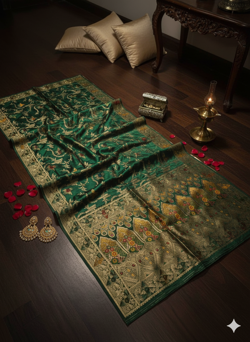 Pure Mashroo silk saree with a rich, glossy finish